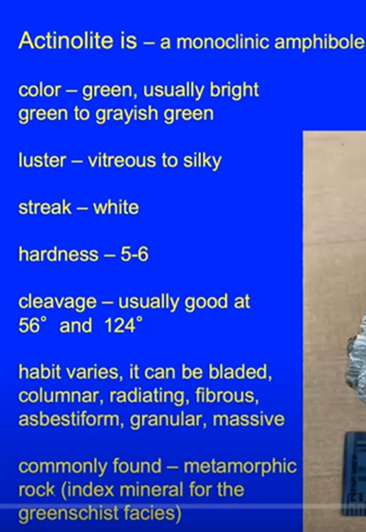 Debra’s slide below provided a physical description of actinolite as follows.