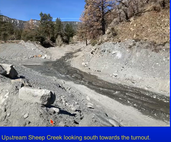 She noted that an important part of this field trip is understanding what you are seeing when you arrive. This preparation includes knowing the nature of the annual mudslides which, in the Wrightwood area, is the “flow” type of mass wasting, the downslope movement of debris, rock and mud, as noted below.
