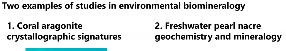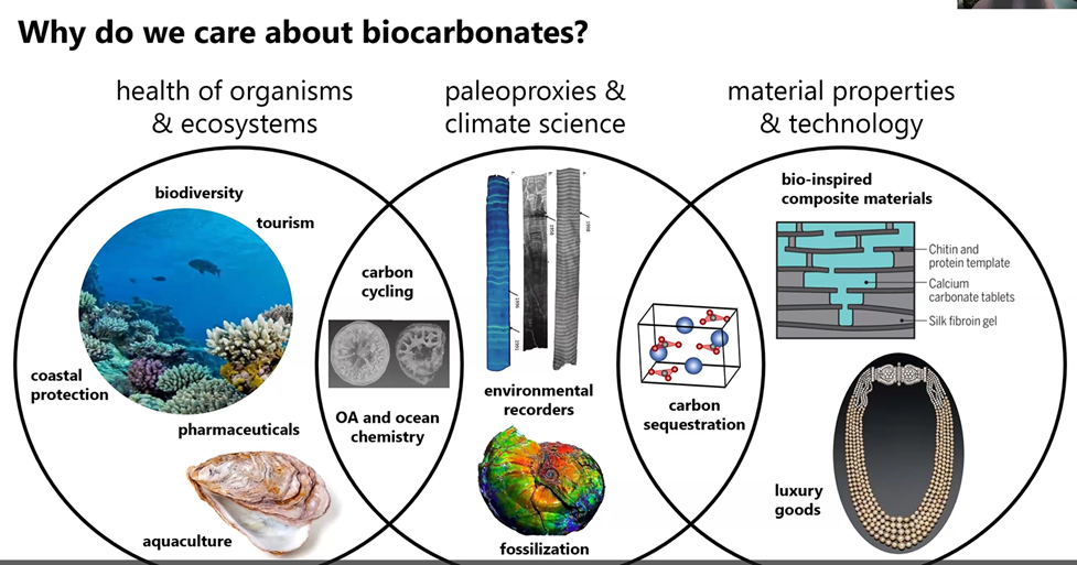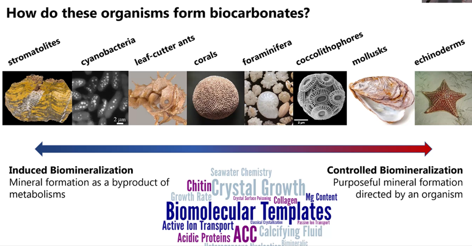 She noted that all the above minerals are commonly found in biocarbonite-forming organisms. But the main focus of her talk is on aragonite.
