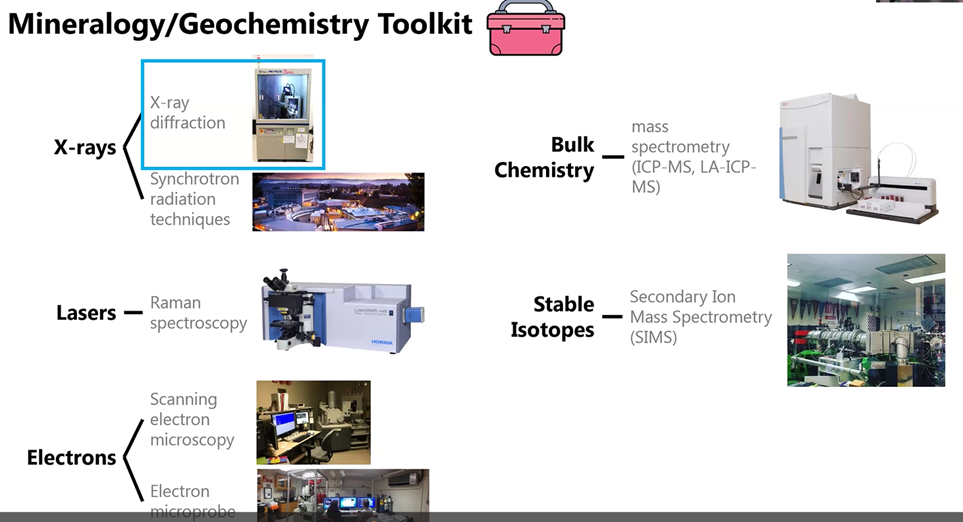 Gabriela also explained the three main tools (X-rays, lasers, and electrons) she and her colleagues use in their research (illustrated below). Watch the video of her presentation to find out which Smithsonian tool is her favorite (hint: What is the Mo Mo?). She said scientists have already identified the fingerprint (X-ray diffraction pattern) for 6,000 of the approximately 9,000 minerals that exist. So this tool provides researchers the mineral identity and a snapshot of the crystal structure that is under investigation.