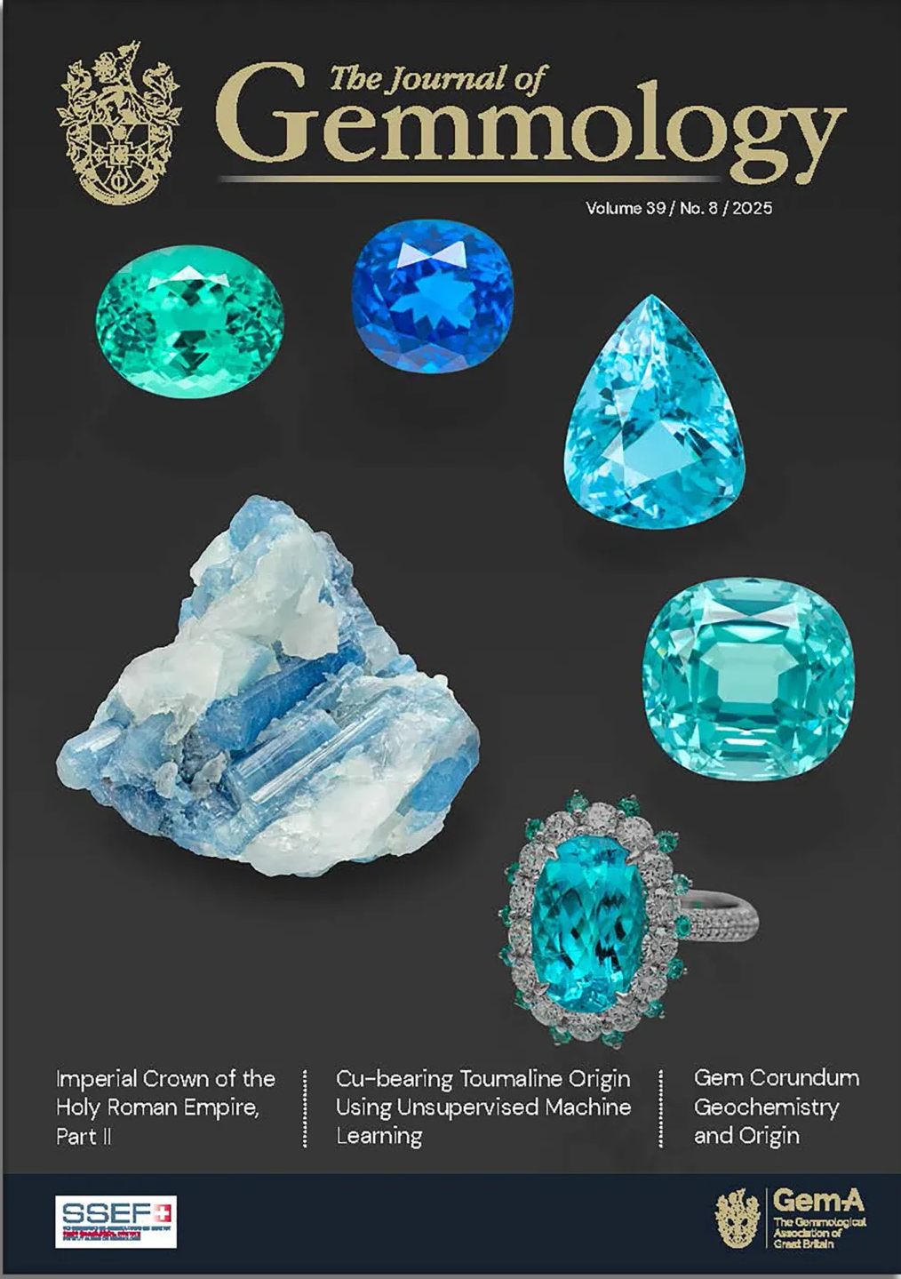Copper-bearing (Paraíba-type) tourmaline is highly valued in the gem trade, particularly those from Brazil. Distinguishing stones from Brazil, Mozambique and Nigeria can be challenging, and an article on pp. 772–787 describes the use of machine learning to geochemically separate material from these three localities.