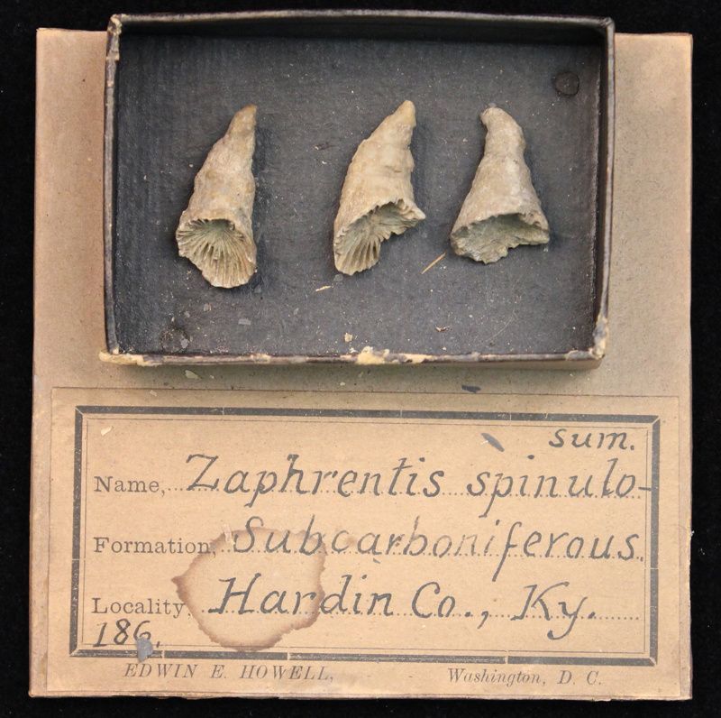 As far back as 1887, staff at the Smithsonian Institution were obtaining specimens from Howell at his various businesses. Accession 18652 (1887) lists Howell (in Rochester) as the provider of some fossils. 21788 (1889, Rochester) is listed as specimens of “siliceous oolite” obtained by Merrill. This is George Perkins Merrill, the person responsible for starting the process of building the SI’s geology and mineralogy collections into the best in the world. Shortly afterwards (21845, 1889, Rochester) Howell traded fossils from New York with Walcott. This is Charles Doolittle Walcott the future Secretary of the SI and the discoverer of the Burgess Shale in Canada.