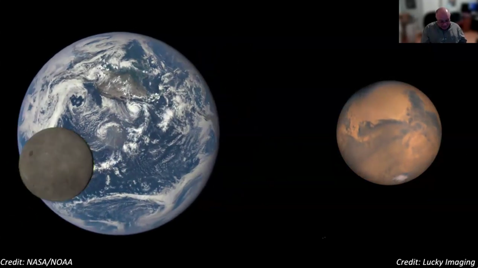 John noted that Mars is actually just over 50% the diameter of Earth, has about 38% of the gravity, and has a less dense atmosphere.