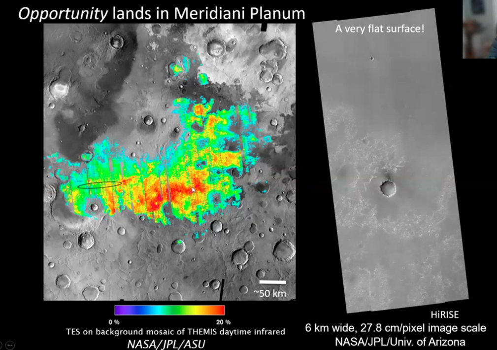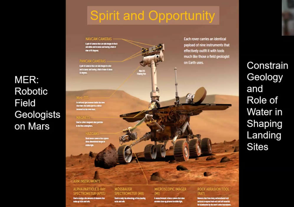John continued: “This is going to be a fairly general talk.” It had to have the character of being an overview because it is intended to share only a few stories of ground-breaking discoveries made during the quarter-century of his work, mainly with each of the three rover programs: Spirit, Opportunity, and Curiosity.