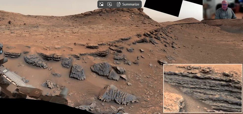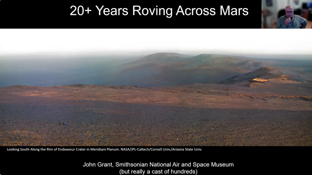 “It is hard for me to believe that I have been involved in roaming across the surface of Mars for the last 20-plus years,” Dr. Grant said as he displayed his favorite photo of the surface of Mars.