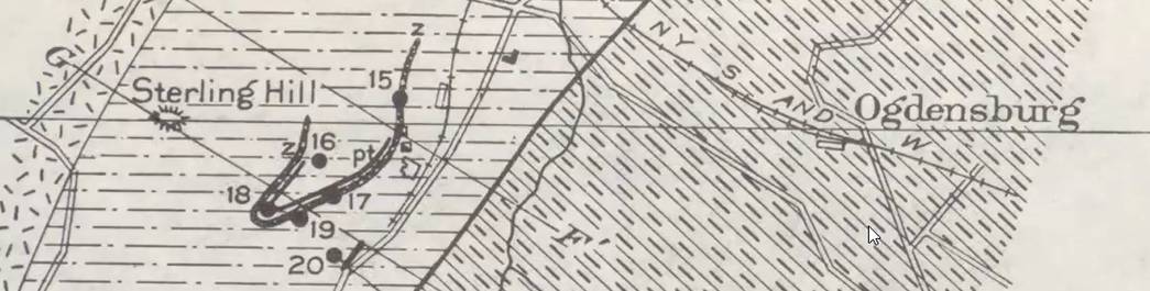 Sterling Hill, the second of the two mines famous for producing fluorescent minerals, is located 1.5 miles to the south of the Franklin mine was also is embedded in limestone. Initially, misidentification of minerals was also a problem there.