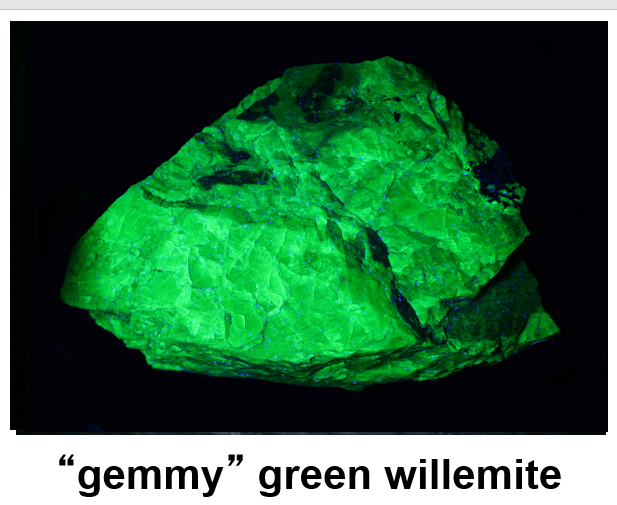 Jim noted that willemite is called “gemmy” because it can be cut and facetted into gemstones.