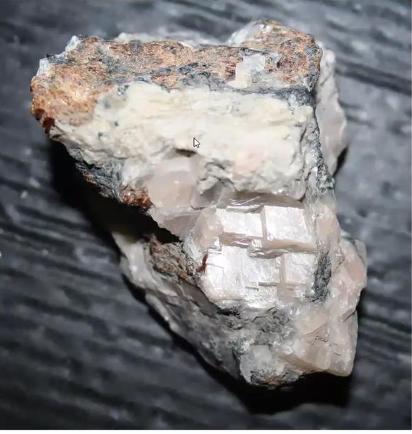 Jim shared photos of many additional minerals such as hemimorphite, microcline feldspar and hardystonite (shown below), whose diverse colors beg for an explanation.