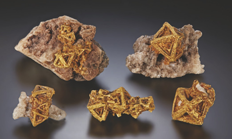 Data presented in the study include morphology, surface microtopography, surface overgrowths, and matrix interface characteristics for both the octahedral and cubic crystals. The authors concluded that none of the data are inconsistent with the hoppered octahedral crystals being true single crystals and the striated cubes being true pseudomorphs after pyrite. In other words, there is no evidence that the samples studied were manufactured. Given that gold and pyrite are commonly found in association worldwide, it may be somewhat surprising that such pseudomorphs have not been seen more often and suggests that rare geochemical conditions are necessary for their formation.