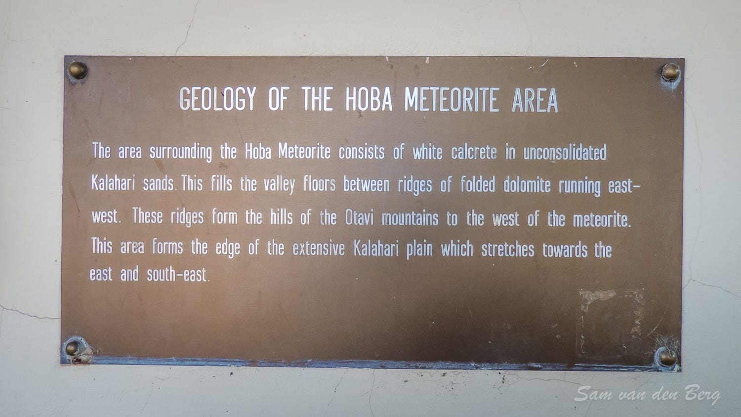 The meteorite was discovered just over 100 years ago (1920) by Hermanus Brits. His statement regarding the discovery is kept at the Grootfontein Museum and it reads: