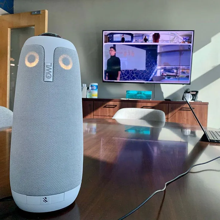 A more sophisticated system uses video technology to track the active presenter. For example, a product called the Meeting Owl is a cylindrical devise that combines a camera, mic, and speaker. It sits in the middle of a meeting room and zooms in on whoever is talking, while remote participants still appear on screens. Many non-for-profit leaders have reported that the Owl improved their hybrid meetings – but requires an investment from the club to buy (currently ~$1,000).