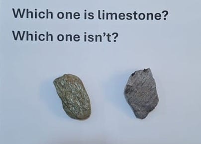 If a rough greyish rock bubbles when you drip acid on it, it is probably limestone. Or maybe calcareous shale, but let’s keep it simple.