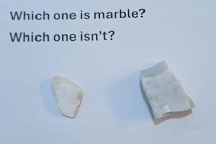 If a smooth, crystalline, rock bubbles, it’s probably marble. For the chemically minded, the reaction is