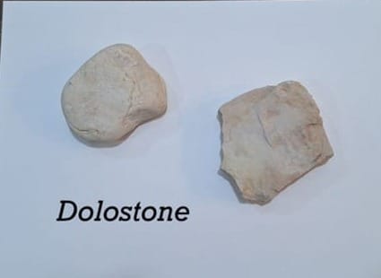 p.s. And just to show the kids that “It’s Not That Simple” (one of my favorite phrases about geology), we have some dolomite from the Niagara Escarpment. Dolomite is a magnesium-rich limestone. It does not fizz when you drop acid on it, but if you scrape the rock, to get some powdered dolomite, the powdered dolomite will fizz.