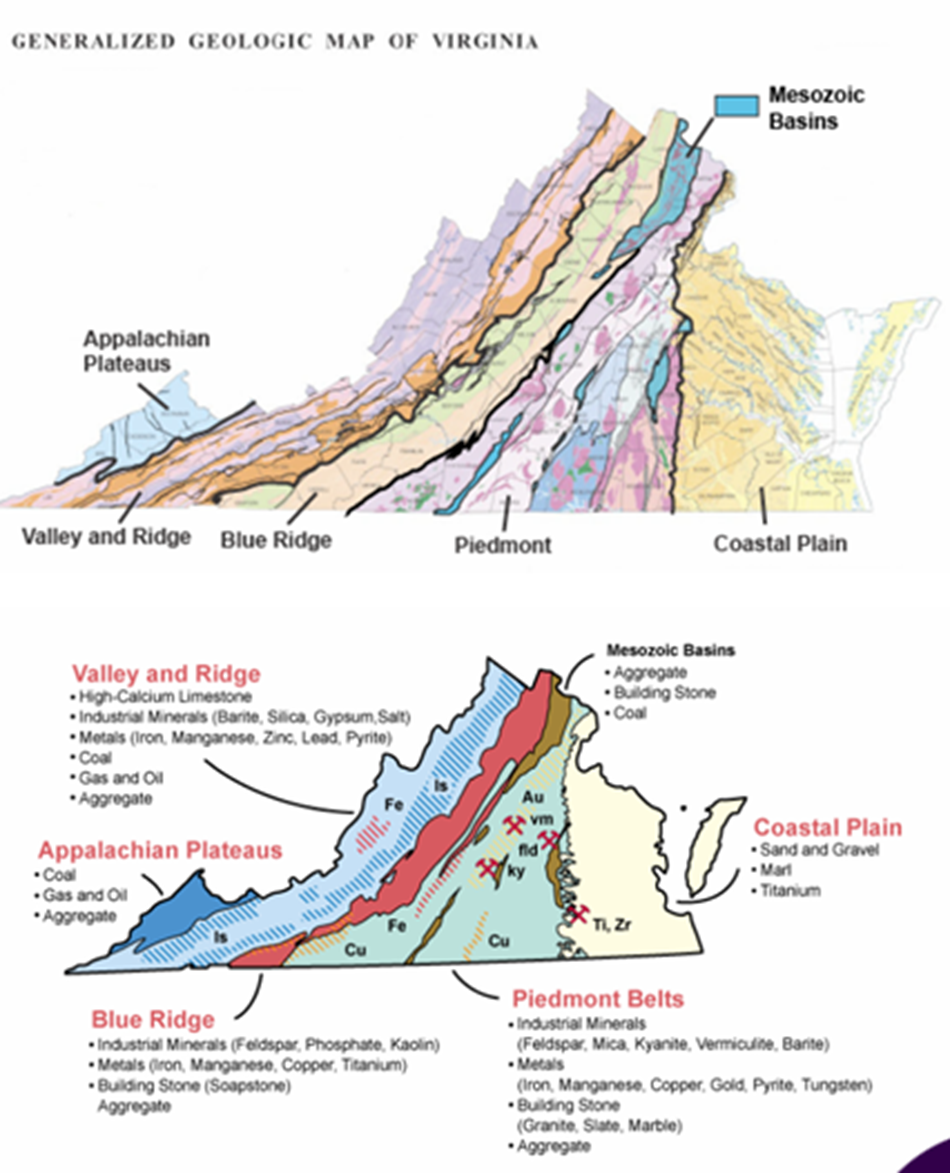 Geological and Mineralogical Features Virginia's Physiographic Provinces