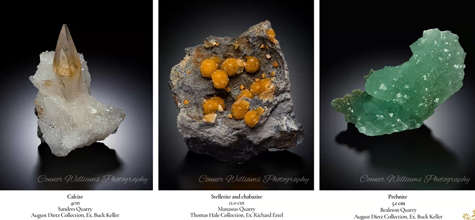 Tom concluded his presentation by showing a few of the minerals which he discussed in earlier presentations. Those specimens have been found in the Virginia areas a bit closer to DC. Below are minerals from Virginia trap rock sites and various quarries, such as the Sanders and Manassas sites as shown below.