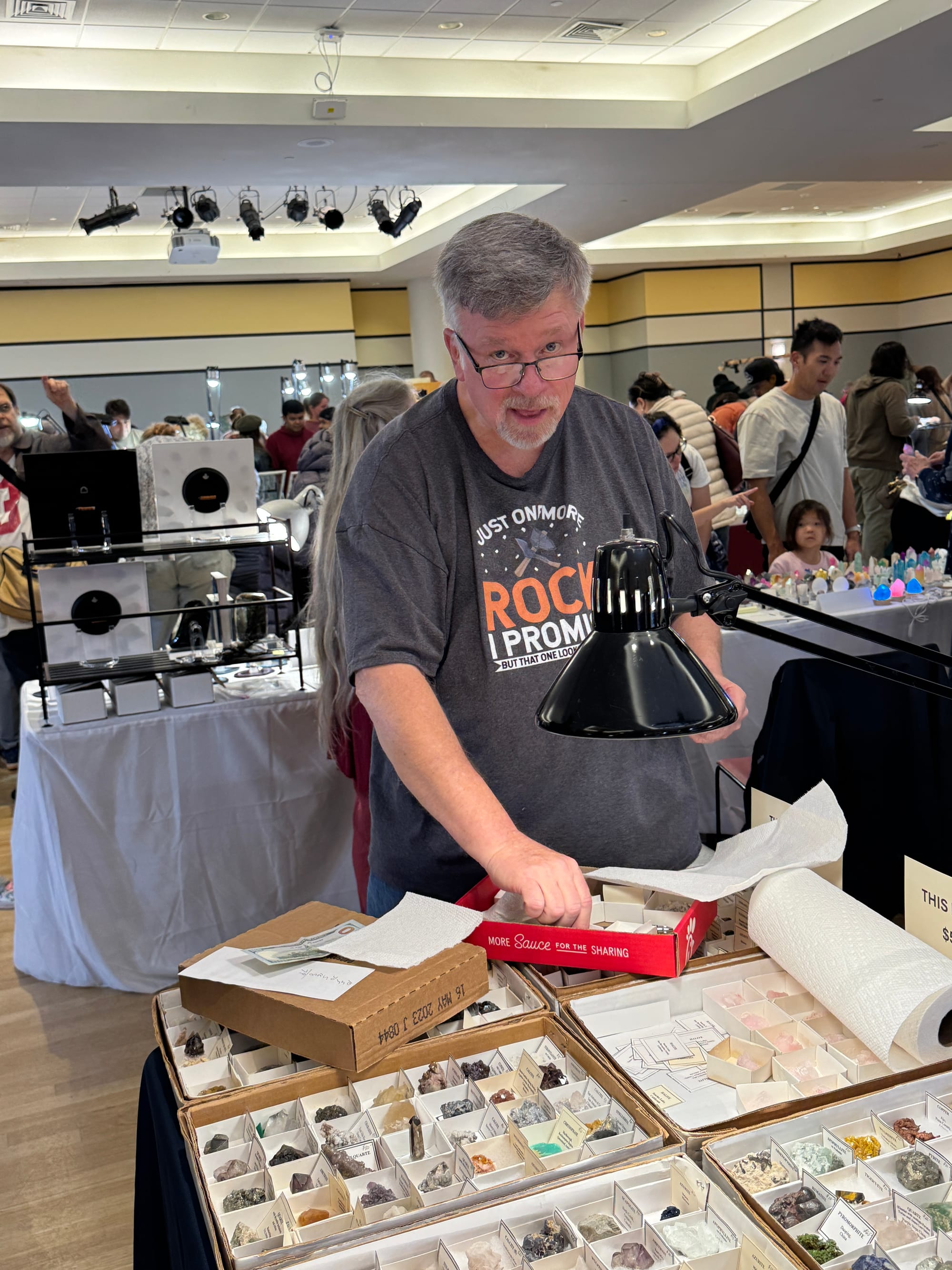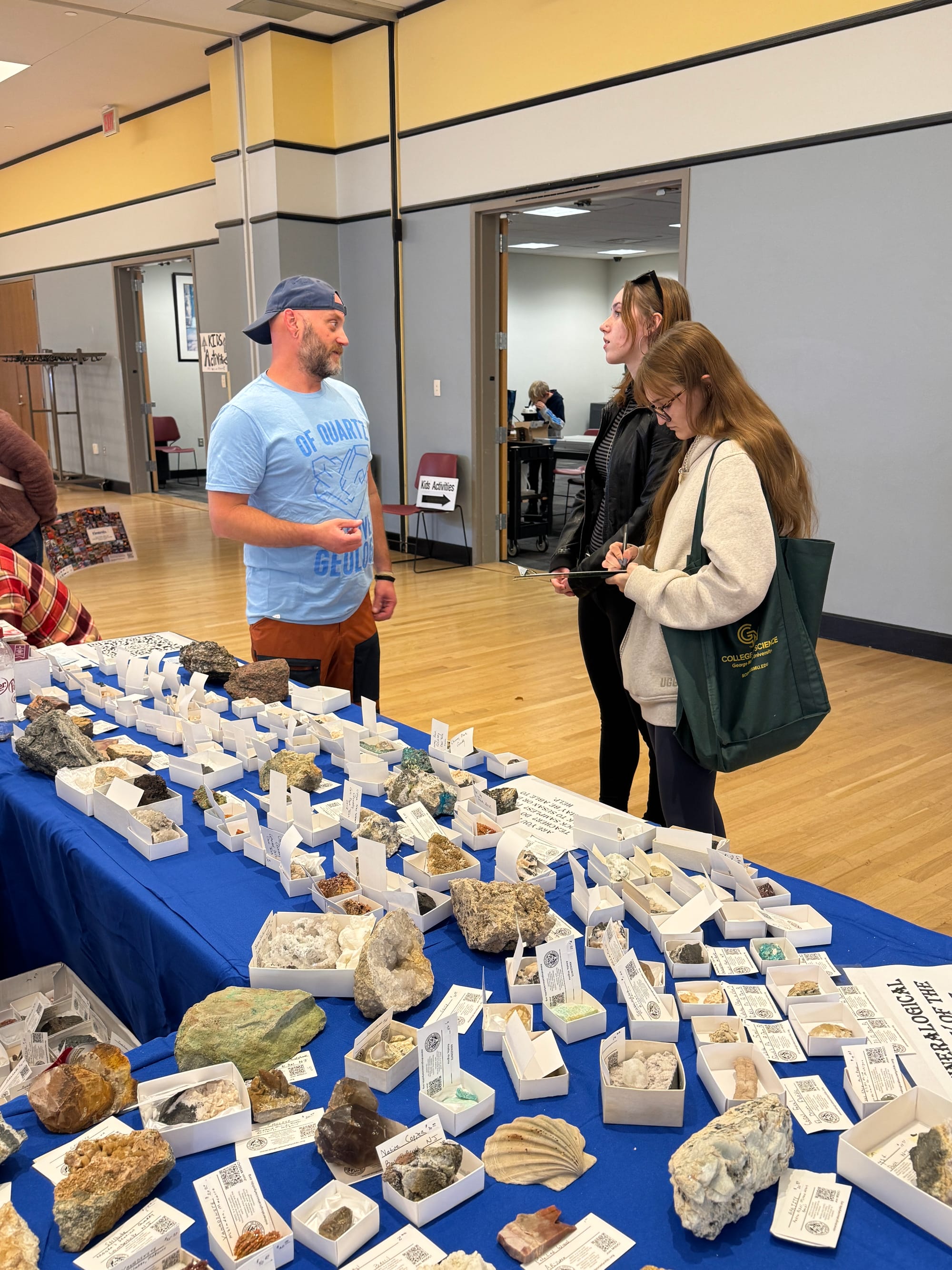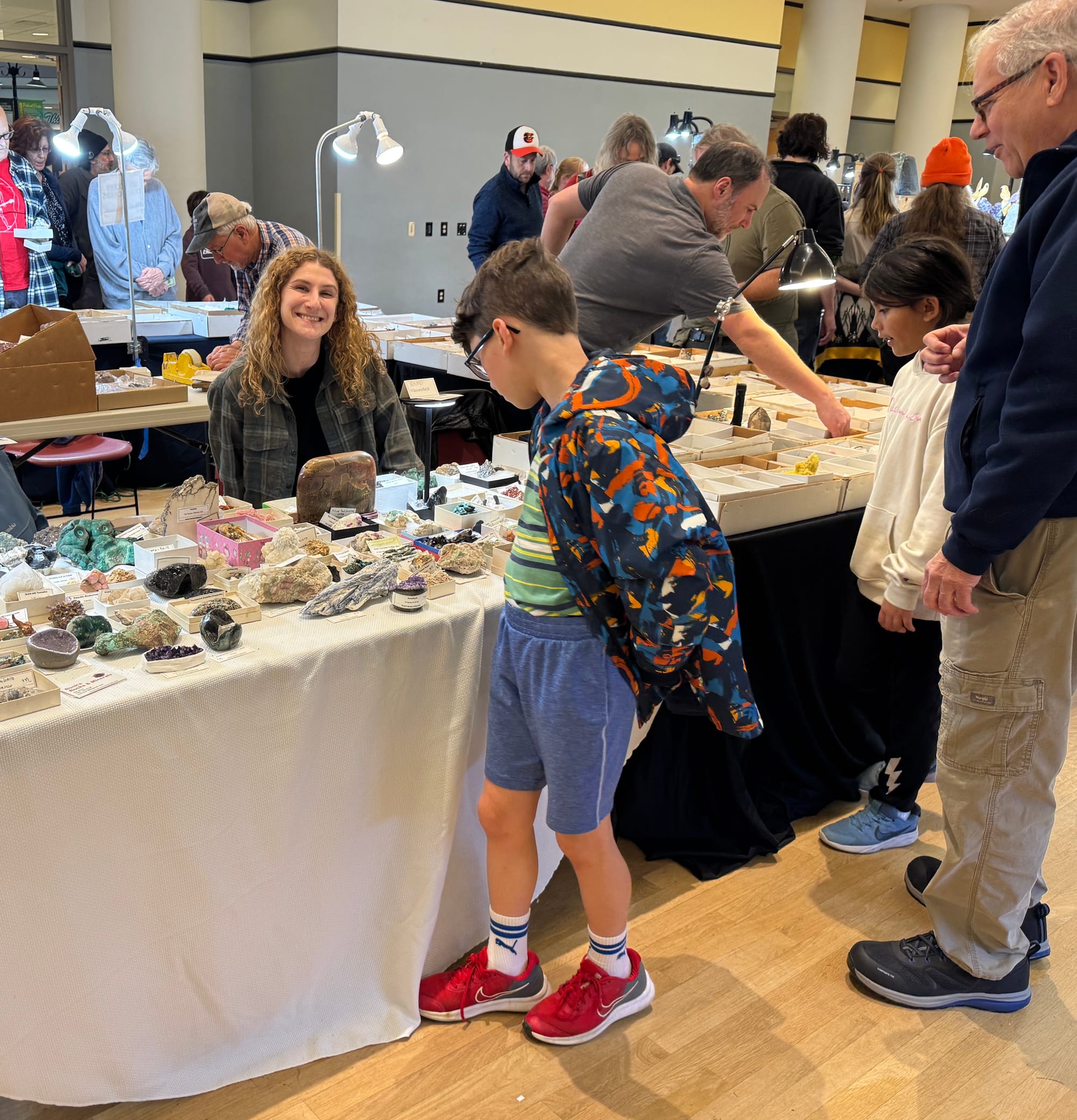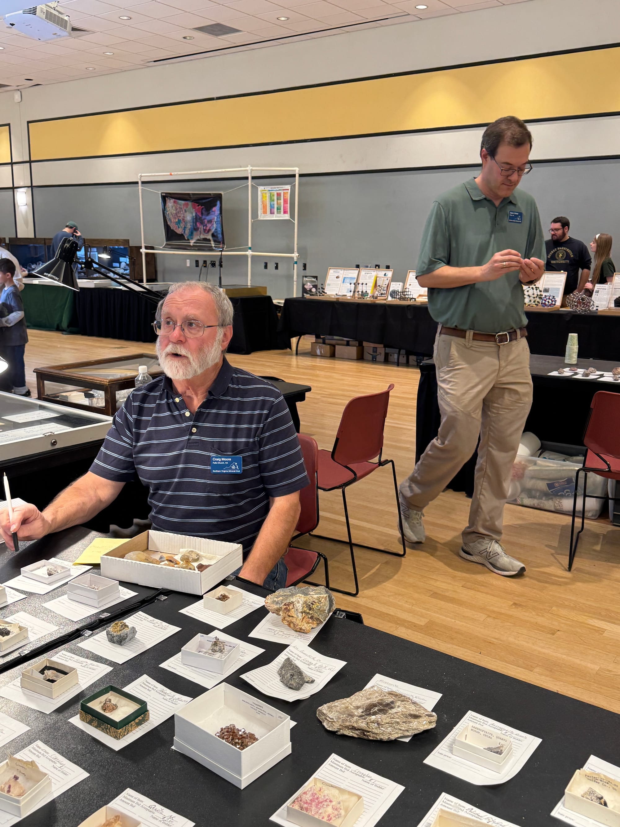Show attendees include people of all ages, geology students from George Mason, serious collectors, not-so-serious collectors, and many people simply curious about the many beautiful rocks, gems, minerals, and fossils for sale at the show.