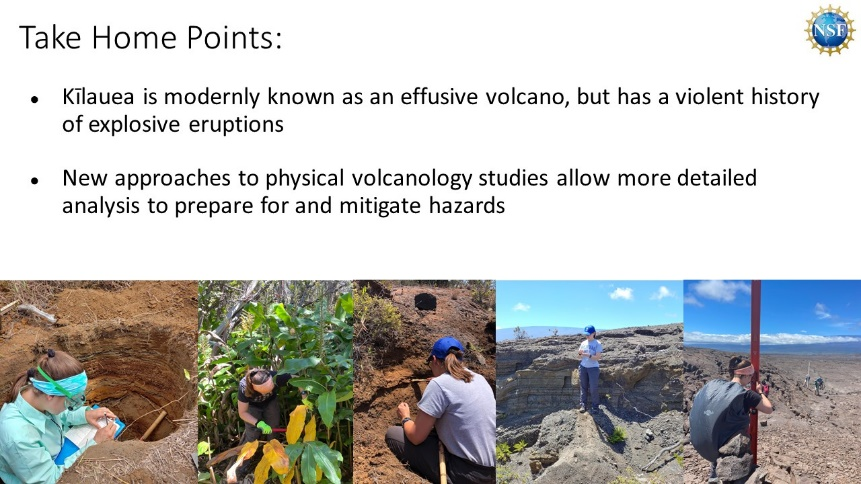 She studied the Kulanaokuaiki Tephra deposits to learn more about where the tephra settled, how the eruptions happened and what the physical properties of the tephra itself can share about the magmatic processes. Her focus was those tephra units of primary depositions, meaning those deposits which appear exactly where they originally deposited.
