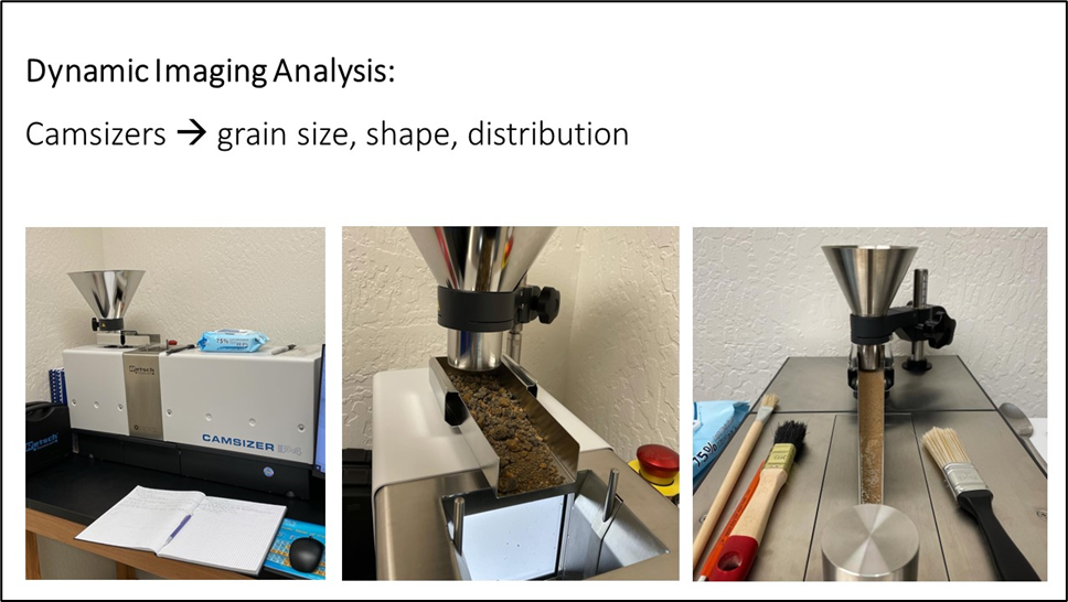 Getting a detailed description of the thickness, grain size, color, sorting and weight of each of her tiny fragments was accomplished by the high-tech instrument for Dynamic Imaging Analysis (DIA) pictured below.