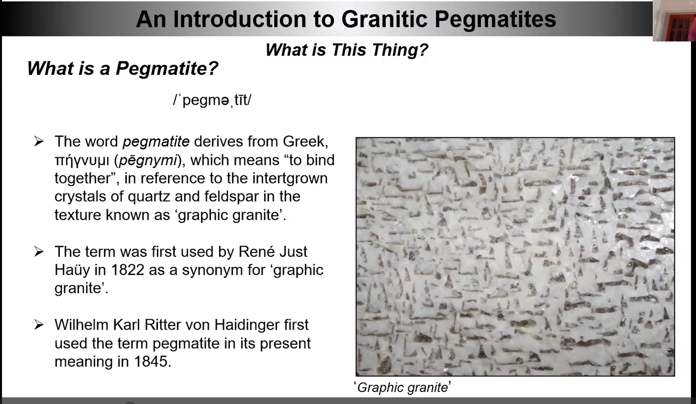 “Tonight, I am hoping to convince everyone that pegmatites are the most exciting and the best rocks on the planet.”