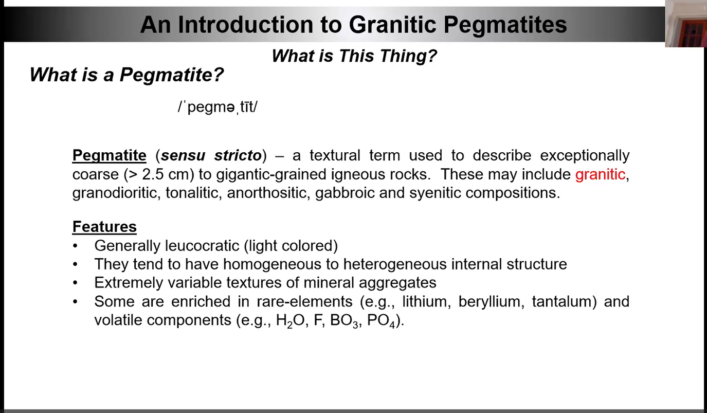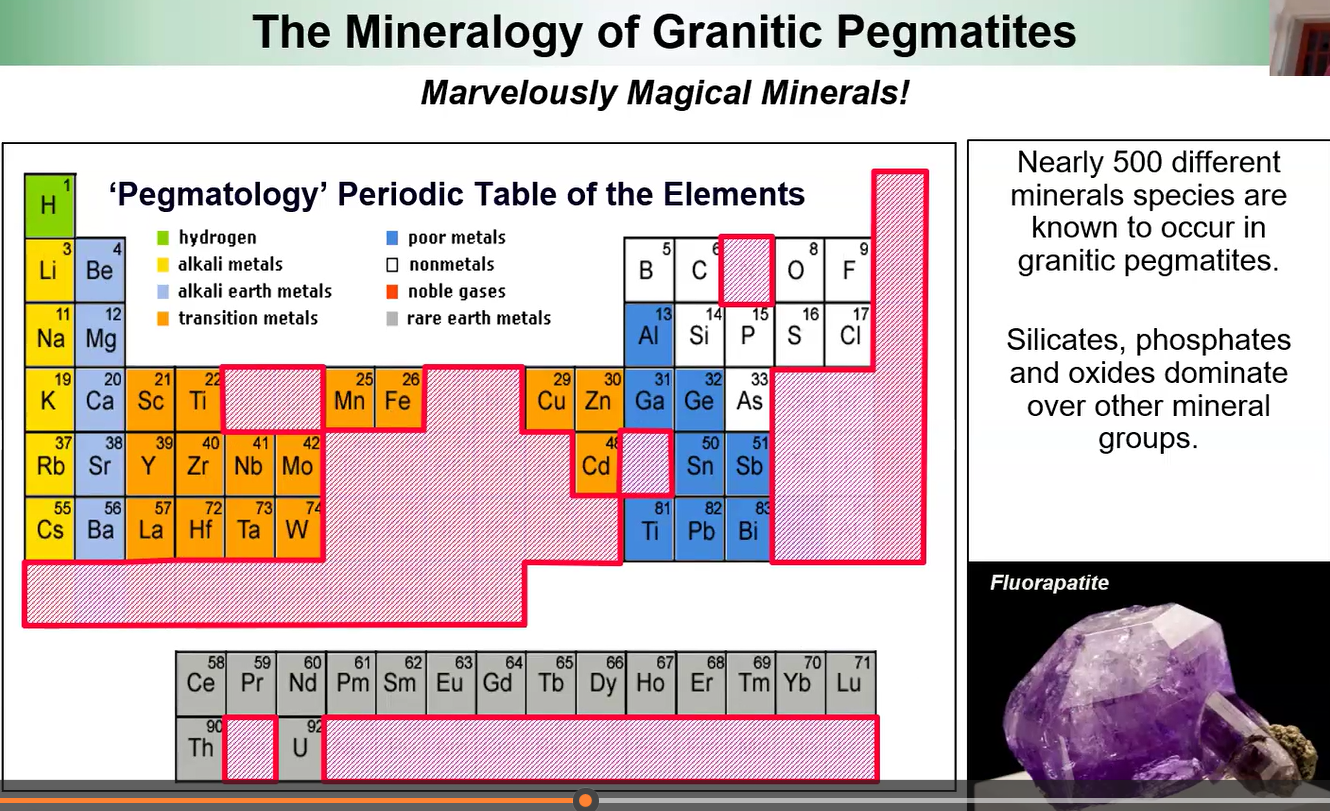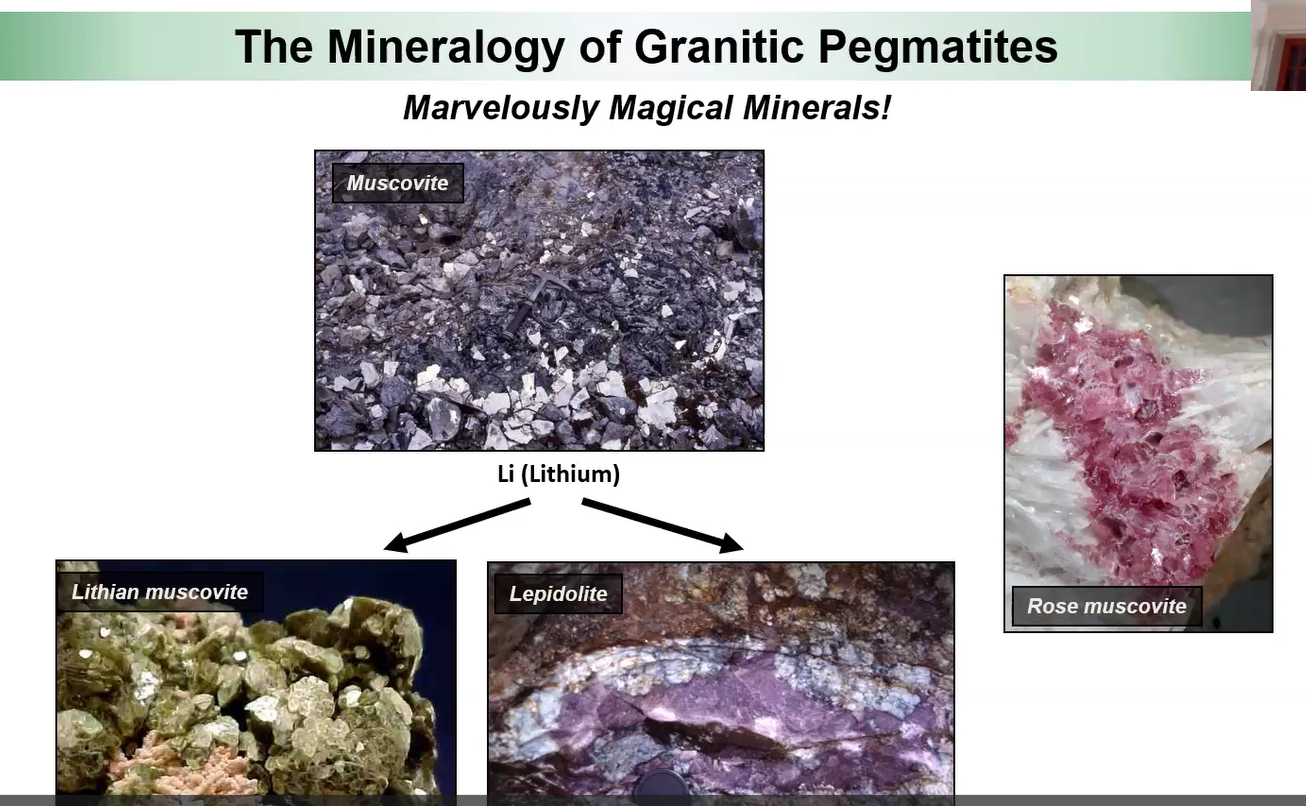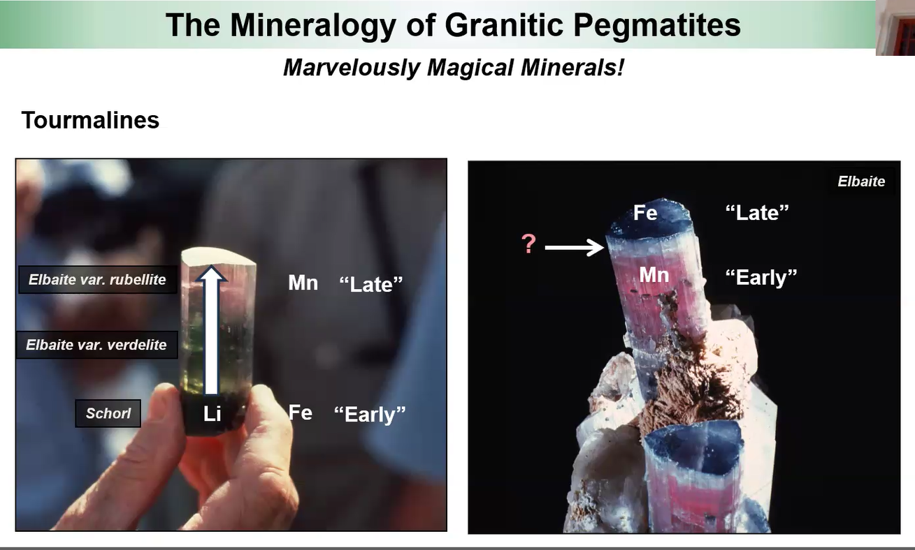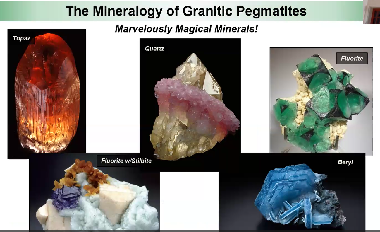 Hint: Mike’s above slide noted: some are rich in rare-elements (e.g., lithium, beryllium, tantalum) and volatile components (H20, F, BO3, PO4).