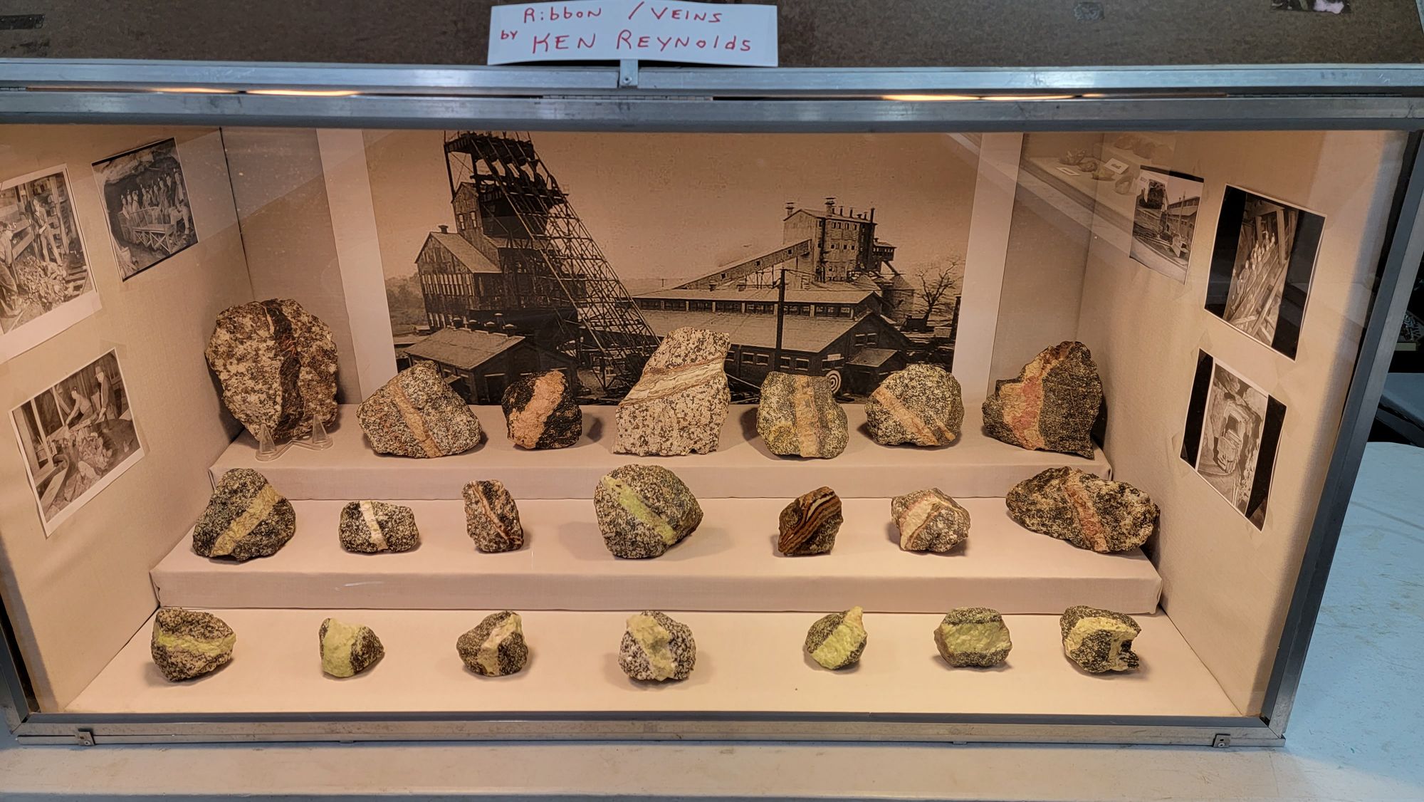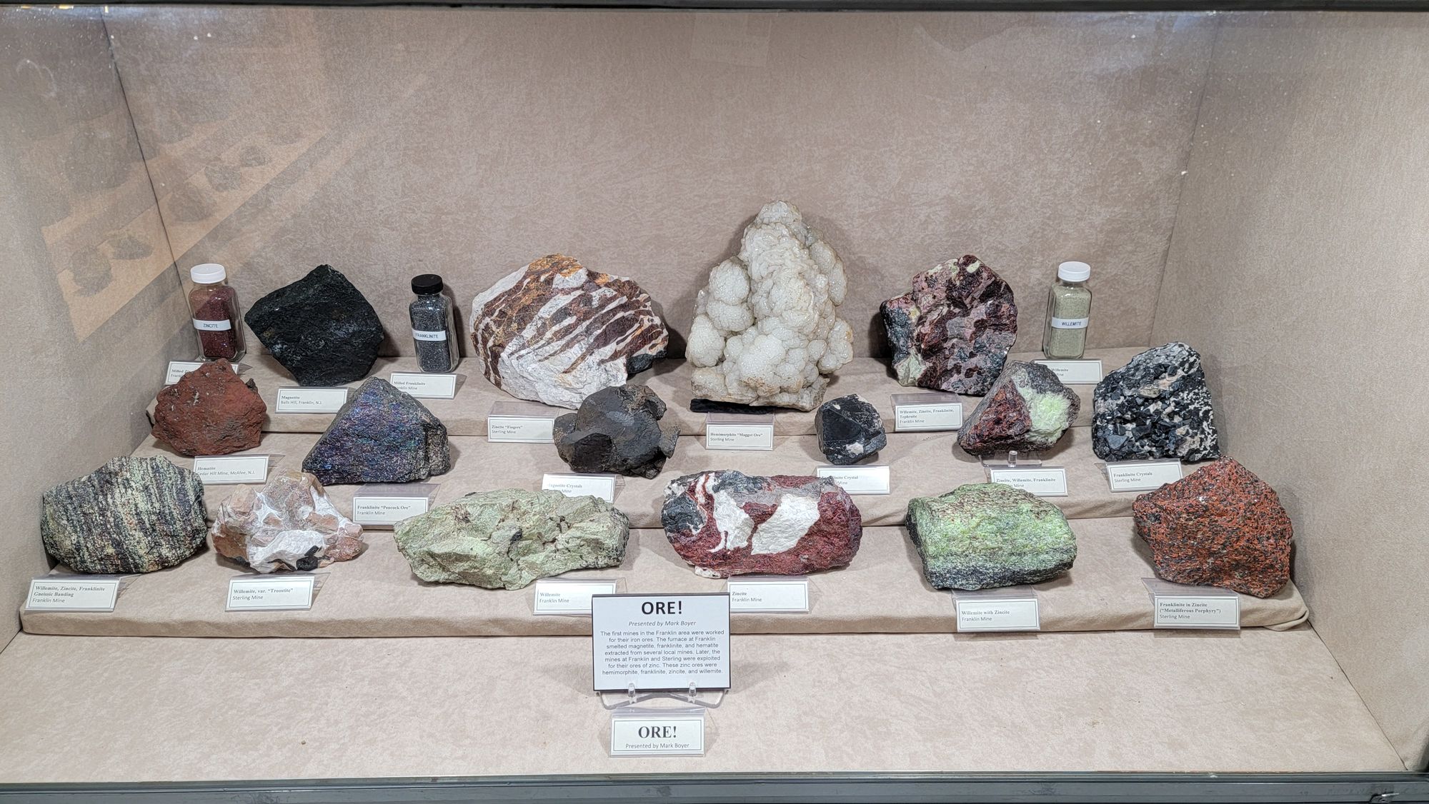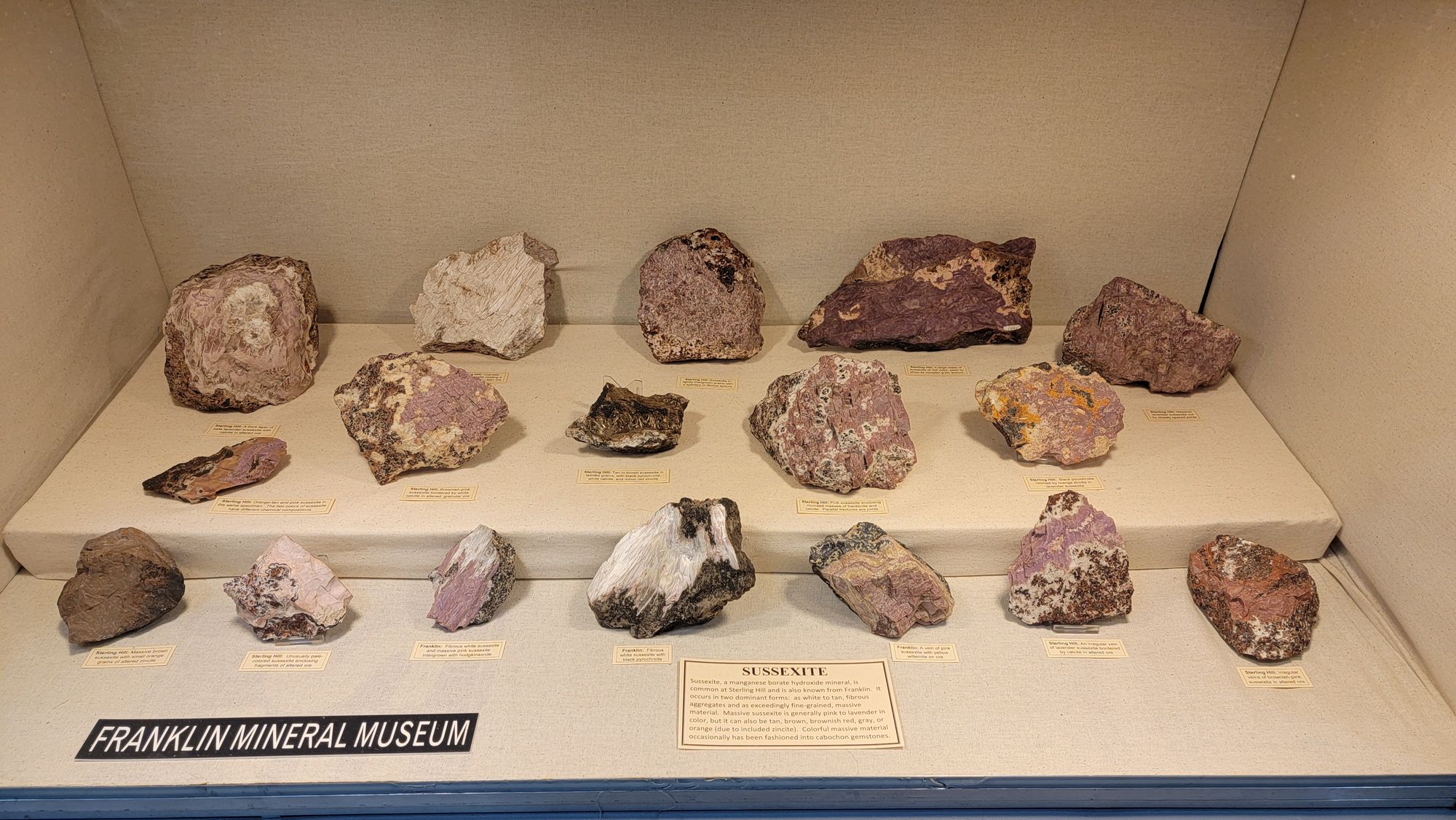 I set up a mineral display for the show as I typically do so I thought I'd share some photos of my display of Franklin/Sterling Hill vein minerals, as well as photos of other displays by friends at the show, as well as a nice display done by the Franklin Mineral Museum.