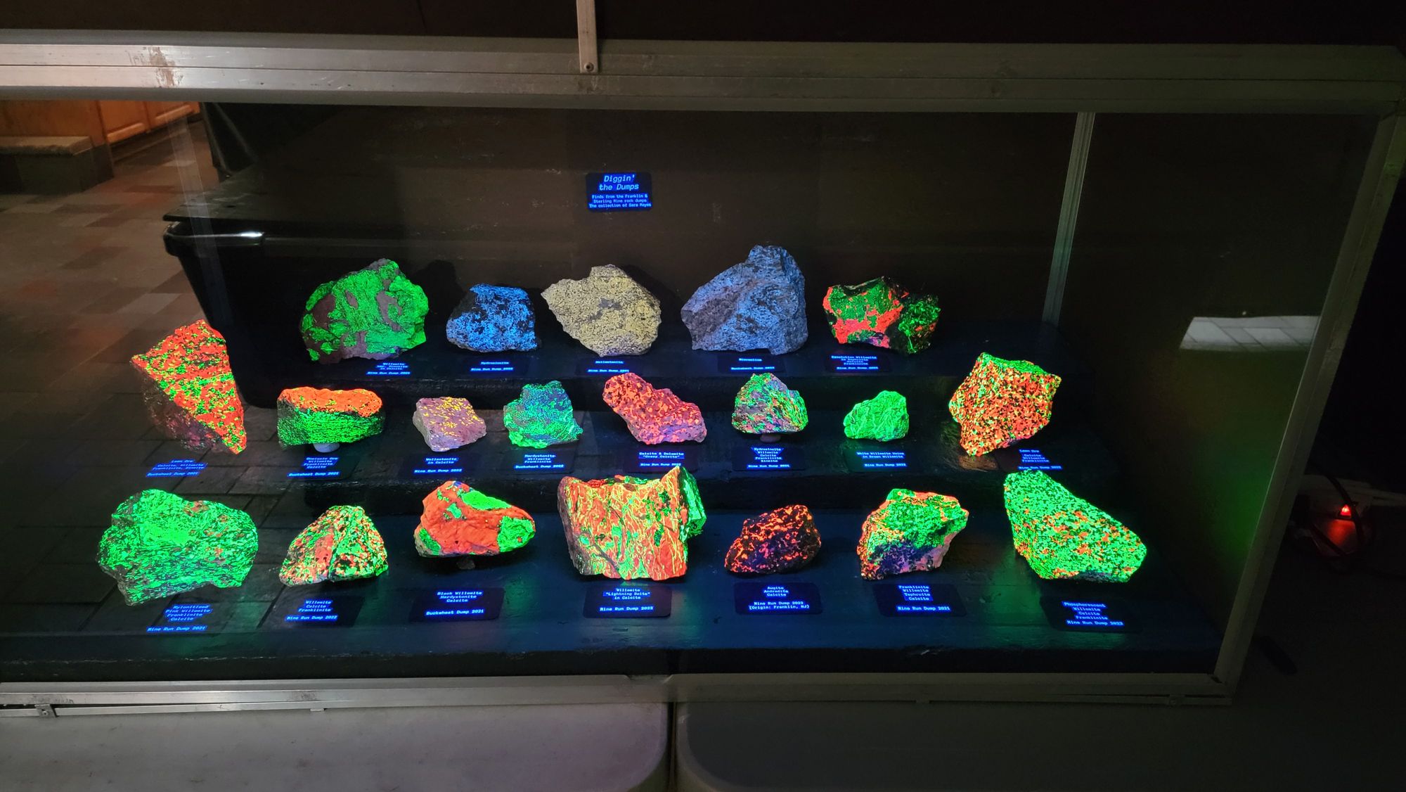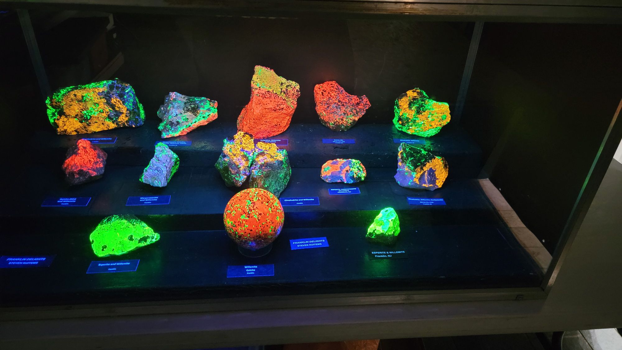 What would a mineral show in Franklin, New Jersey be without fluorescent minerals? Below are some pictures of the fluorescent mineral displays.