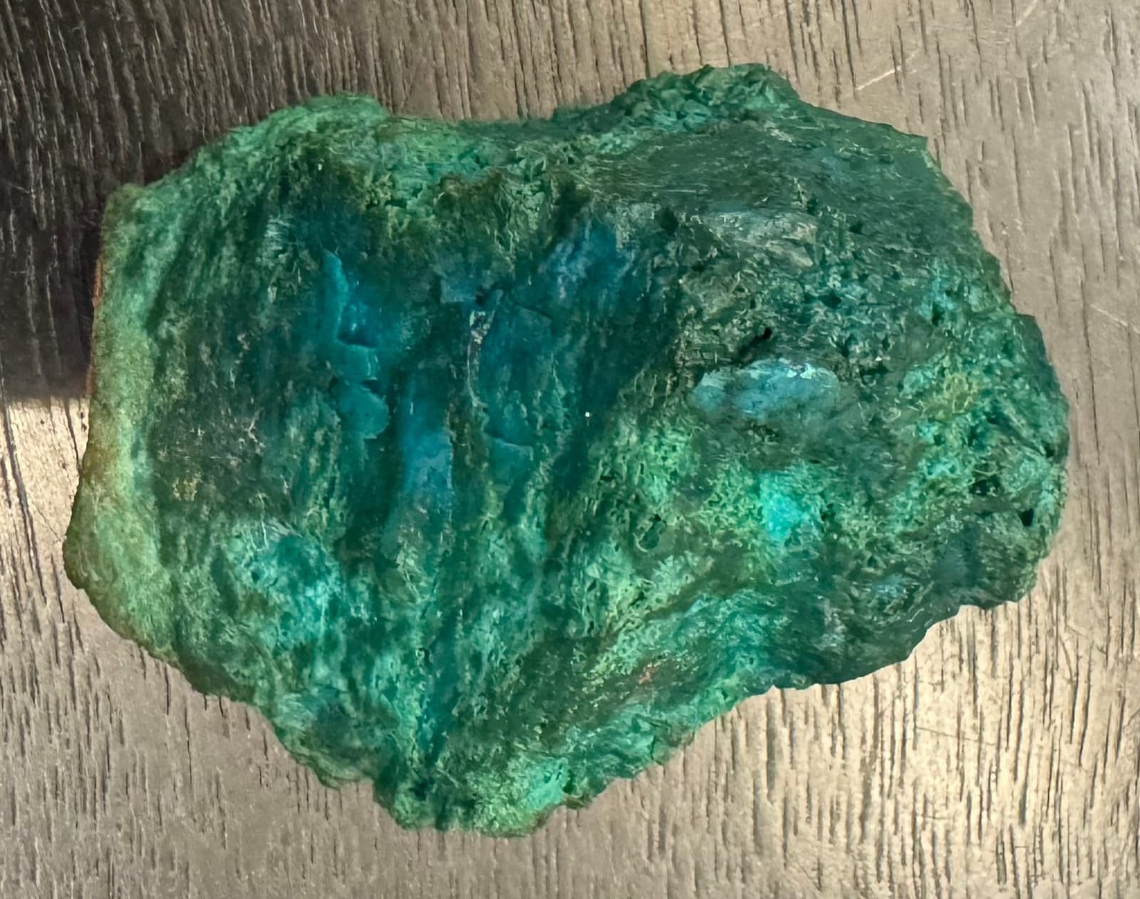 Sometimes when specimens dry, they maintain their color. Other times, you may wind up with a pile of dust or a lusterless dull green piece. It is highly variable. I have photos of a specimen I collected 10 years ago; it was electric blue (top photo). Now it’s a dull bluish-green (bottom photo). These are photos of the same mineral specimen! Preservation of highly hydrated chrysocolla is an art and involves different resins and stabilizers. I’ve experimented with these preservation techniques with some help from a good friend.