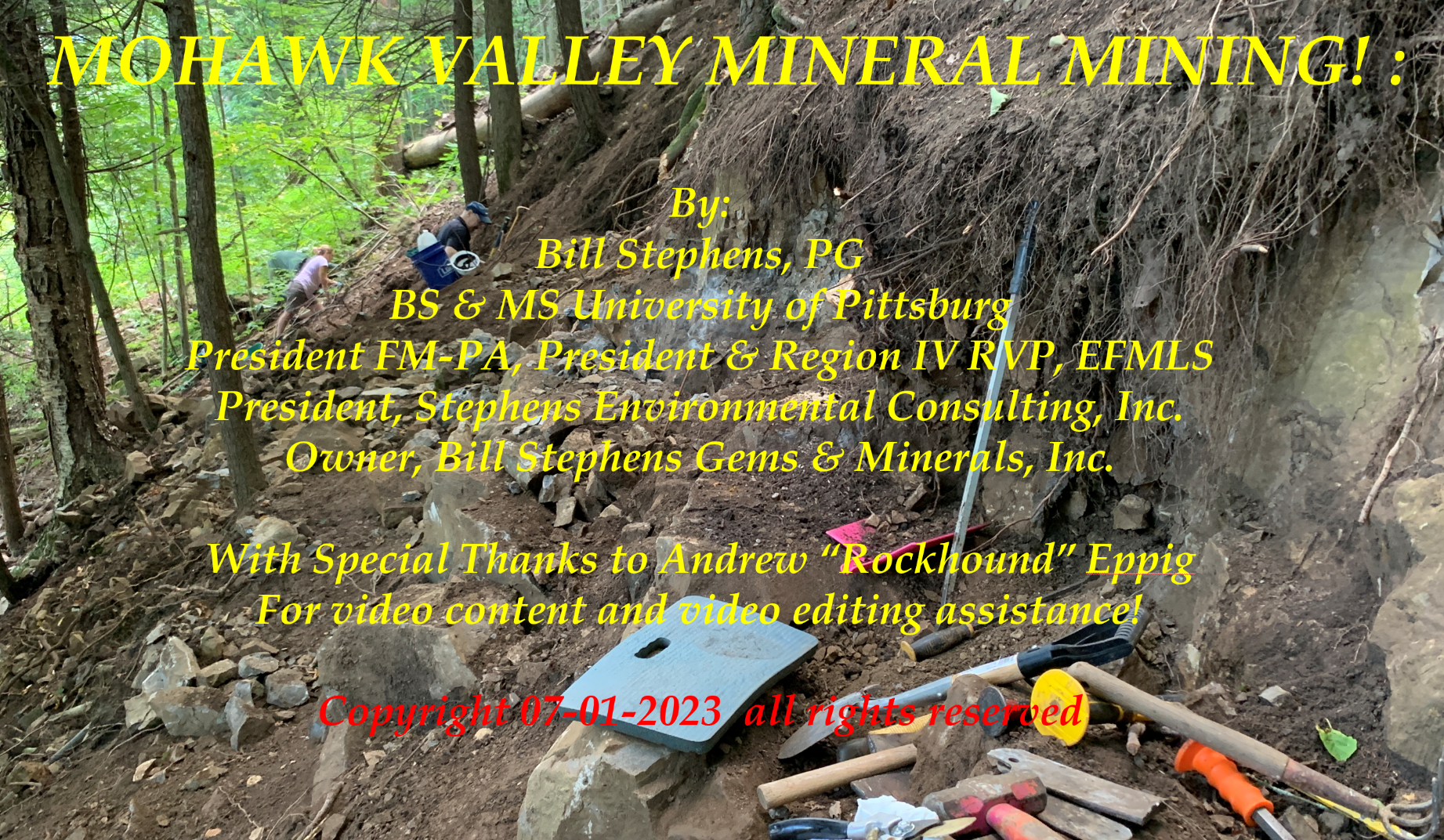 Bill's talk to MSDC will provide an update of his September 2022 presentation to MSDC and includes video of significant pocket reveals including Lee Leveques’ remarkable discovery of “Hercules, Medusa and the Baby.” He notes that Hercules weighs more than 28 pounds and, to date, is the undisputed largest reported skeletal, fenstered (windowed), smoky, mud-included Herkimer Diamond cluster on record. Bill also will describe the geology and detailed mapping he did at the site. It's about 50 minutes long so prepare yourselves for a full hour of fun and wows.