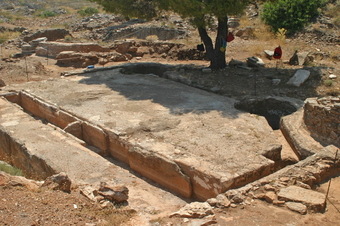 The photo shows the narrow channels that brought water from storage cisterns to the scrubbing holes used for cleaning the minerals. The integrity of the processing sites was preserved because when the Athenian Greeks were eventually militarily defeated, silver mining and processing in effect ceased. Their processing sites were abandoned and left mostly intact.