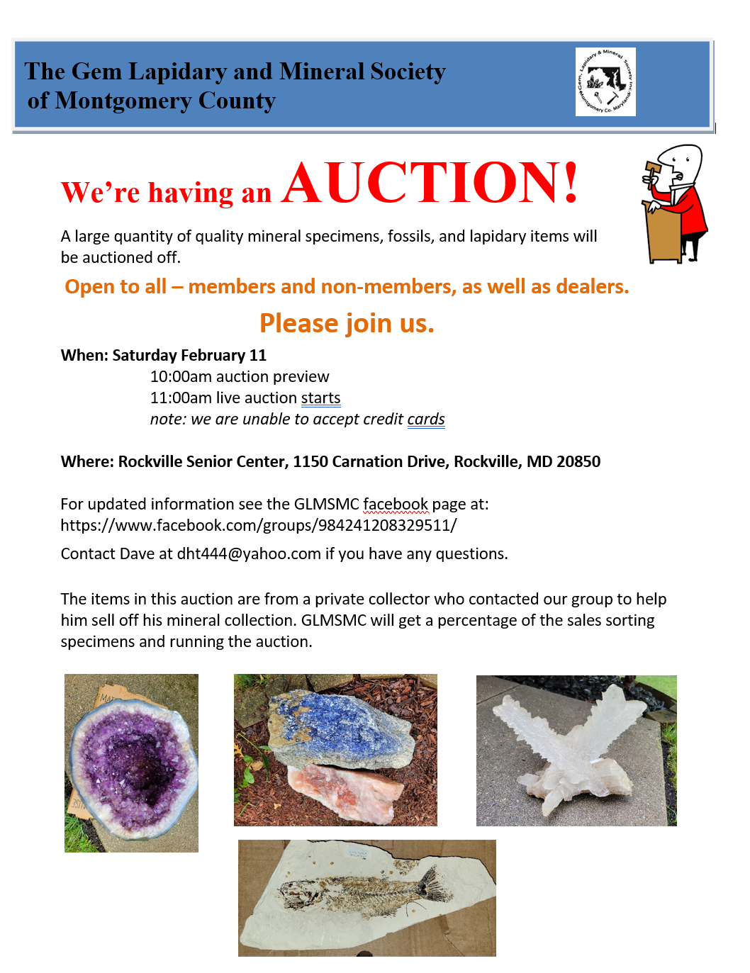Special Auction by the Gem Lapidary and Mineral Society of Montgomery County