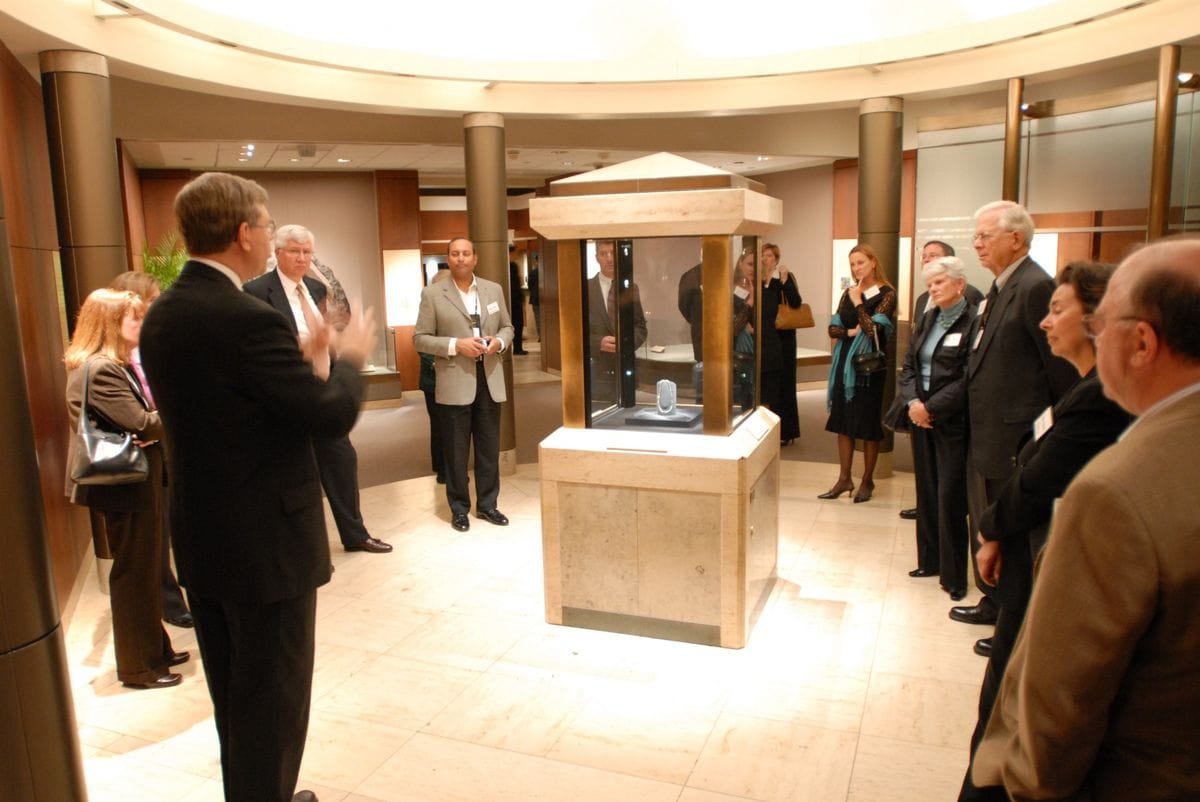 Mrs. Harry Winston presented the Hope Diamond to Dr. Leonard Carmichael, Secretary of the Smithsonian, and Dr. George S. Switzer, Curator of Mineralogy. The Hope Diamond was exhibited in the Gem Hall at the National Museum of Natural History and almost immediately became its premier attraction. The Hope's star power was apparent – attendance at the museum just about doubled.