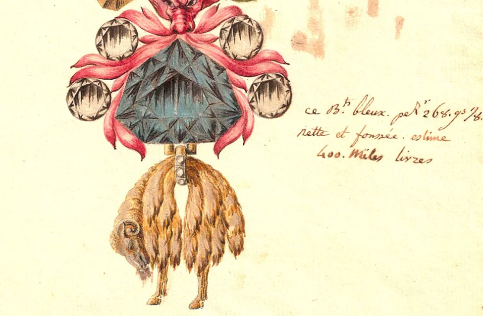 On the night of September 11, 1792, a group of thieves climbed through some open windows and stole some of the French Crown Jewels. Authorities were not aware of the theft, so on the following nights, the miscreants returned to steal more of the jewels, but acted carelessly and loudly and ultimately were caught. By then, the Order of the Golden Fleece was gone. The French Blue Diamond has not been seen since, at least not as the French Blue.