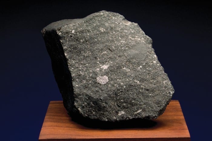 According to Elizabeth Cottrell, Chair of the Department of Mineral Sciences at NMNH, “If you chopped the meteorite up in a blender and analyzed it, you would find it has the same elemental composition as the Sun and Earth and everything else that formed from the nebular components that our solar system came from. It contains all of the elements that make up everything we are.”