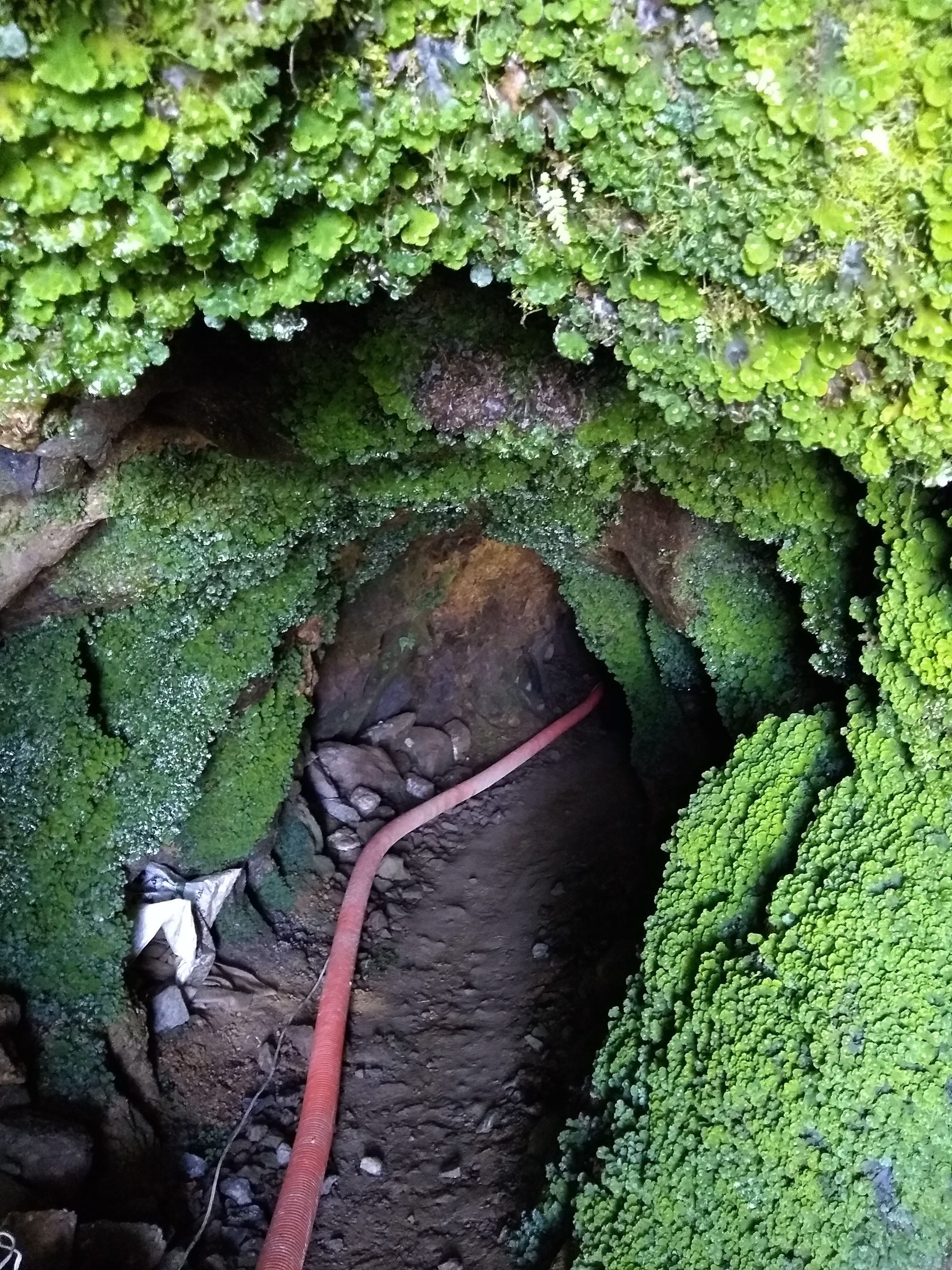 Some of the mines are hard to spot, up hills and behind outcrops or trees. Others are completely obvious, with disgorged rocks and dirt scattered in front of what looks like a wound in the hill. Some mines have small, makeshift shelters out front, and each active mine has an altar at the entrance, adorned with candles and small offerings for the safety of the miners and in exchange for the crystals being taken from within. Long stretches of flexible plastic tubing line active mines to help circulate air in the deeper chasms.